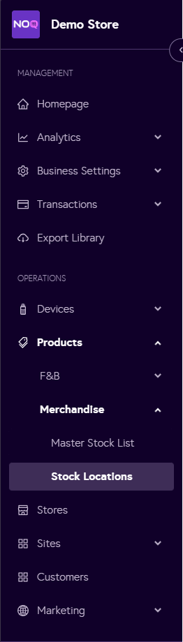2. From the sidebar, navigate to Products > Merchandise > Stock Locations.
