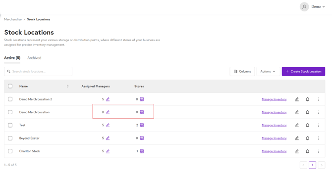 6. Clicking on Manage Inventory lets you view all items assigned to that stock location.