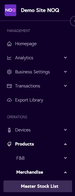 2. Navigate to Products -> Merchandise -> Master Stock List.