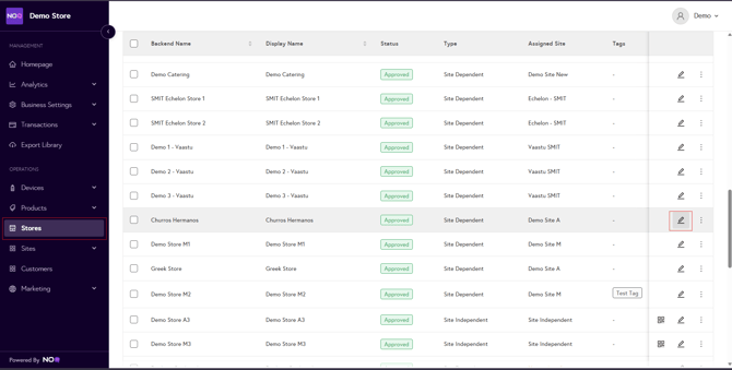 2. In the sidebar, click Stores, then click the Pen.🖊️ icon next to the relevant store to open its profile.
