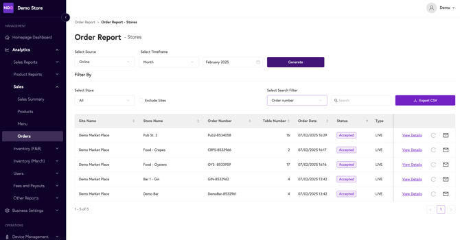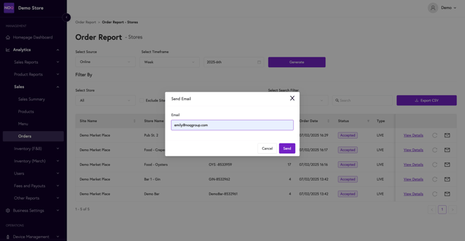 You can email or reprint any in-person orders. However, you can only re-print online orders from your FPOS or handheld device.