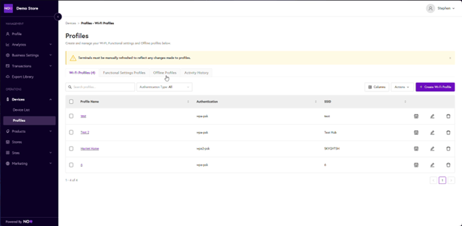 Here you will see any previously created profiles for offline sales. If you’d like to create a new profile, select the purple 'Create New Profile' in the top right of the screen to begin.