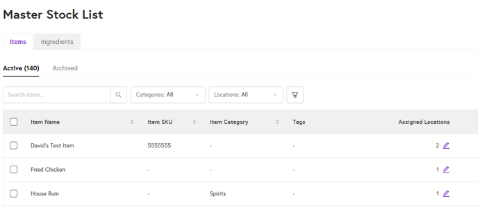 - Navigate to Products > F&B Products > Master Stock List > Items