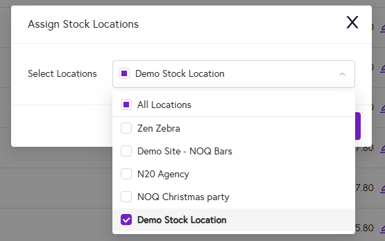 - Select the Pencil icon in the Assigned Locations column for the item you want to assign, which will open the location selector.