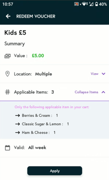 - If the voucher applies only to specific menu items and is percentage based, the discount will be applied only to those items. Click Apply to return to cart.