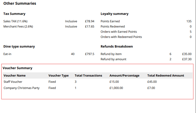 4. Switch to the Other Summaries tab and scroll to the bottom of the page to view the Voucher Summary.