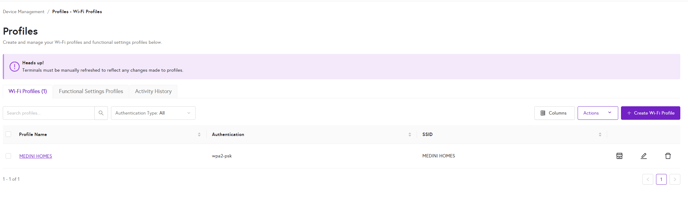 - Automatic Connection: Once the Wi-Fi profile is created and assigned to a terminal (or group of terminals), those terminals will automatically connect to the network without needing to re-enter credentials.
